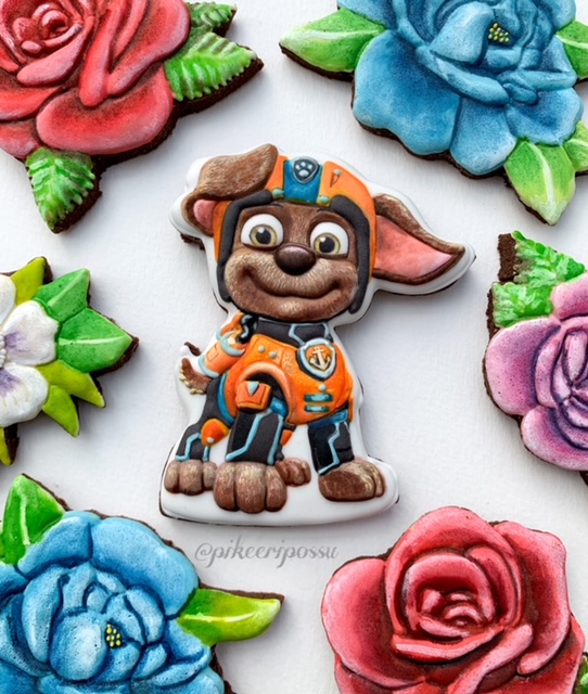 Lopuksi, kun nämä pikeerit olivat täysin kuivuneet, maalasin vielä elintarvikeväreillä yksityiskohdat, jotka viimeistelivät lopputuloksen. Pitkä prosessi siis, mutta ei työtä liika suurta, ei pentua liika pientä, right?! 😀