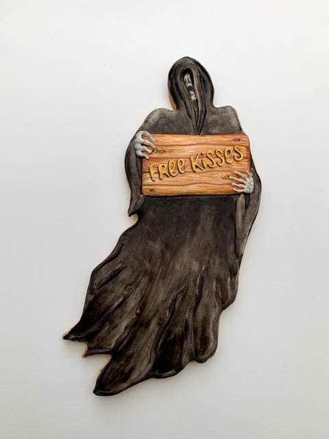 Nämä ovat siis kaikki 100% syötäviä, gluteenittomia keksejä, jotka on koristeltu pikeerillä ja käsinmaalattu elintarvikeväreillä. Mutta vaikka nämä ovatkin täysin syötäviä, olen tietoisesti jättänyt ne syömättä, koska niillä on itselleni tunnearvoa. Ne ovatkin oikeastaan vain hyvältä tuoksuvia taide-esineitä nykyään.